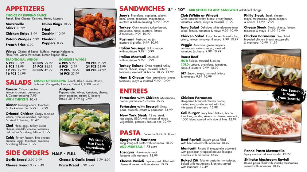 Pasta lovers will rejoice at options like homemade lasagna and spaghetti and meatballs, crafted to perfection. Each dish bursts with flavor, made even better by Joey's commitment to fresh ingredients. Their pizza is not just a meal; it's an experience praised by numerous customers for its incredible taste and generous toppings.