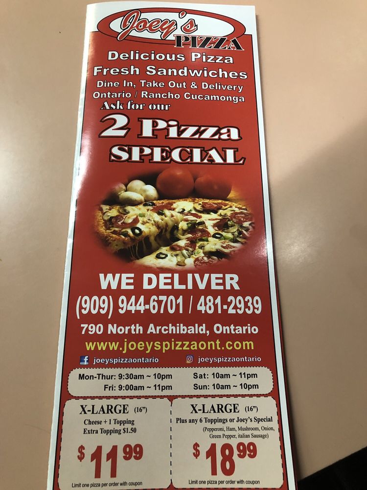 Welcome to Joey's Pizza Ontario, where culinary delight meets comfort food! Nestled in Ontario, CA, this gem specializes in pizza, chicken wings, and sandwiches, serving a diverse menu that promises something for everyone.